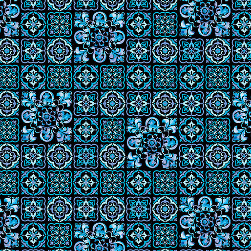 Benartex Blooming Crystals by Laura Coia Painted Tile in Topaz