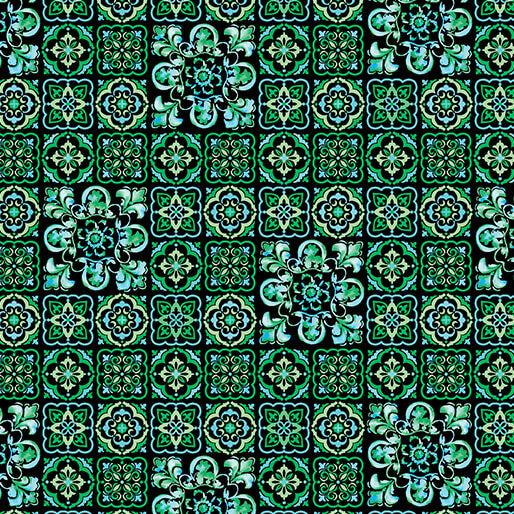Benartex Blooming Crystals by Laura Coia Painted Tile in Emerald
