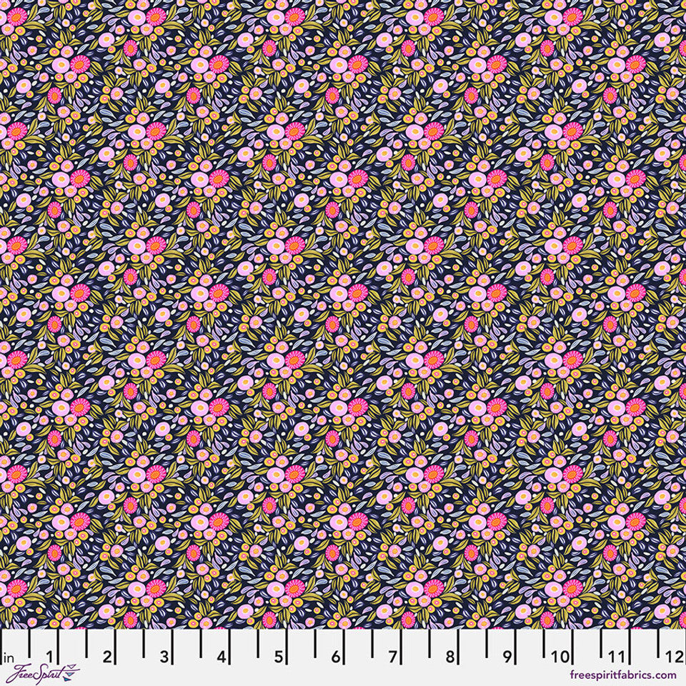 Freespirit Fabircs Paradise Blooms by Kirsten Katz Mini Wildflowers in Blueberry