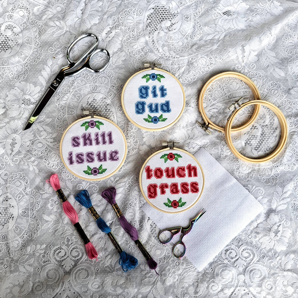 This silly cross stitch kit is perfect for beginners! It includes an easy to read full-color chart, as well as a beginner stitching guide I wrote for anyone new to the craft.