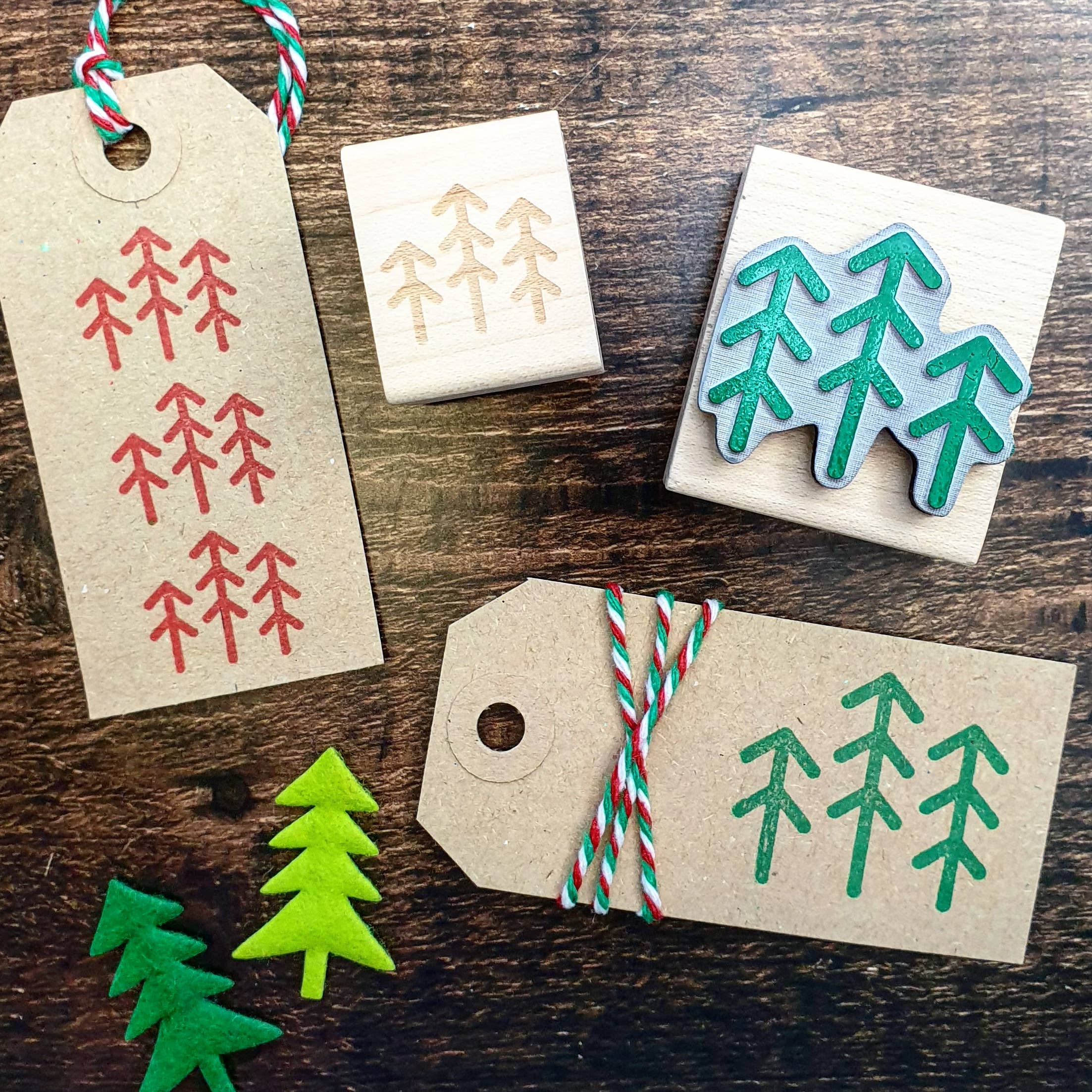 Create a mini wintery forest with this stamp design, simple but effective! Three mini trees in a little cluster and available in 2 sizes