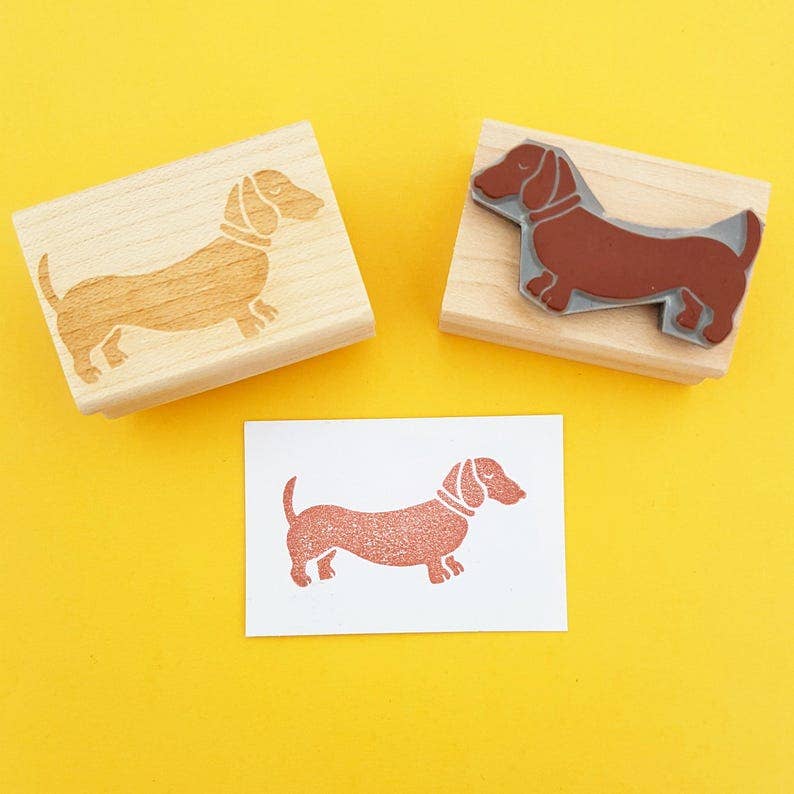 Adorable dachshund rubber stamp, complete with little collar detail!