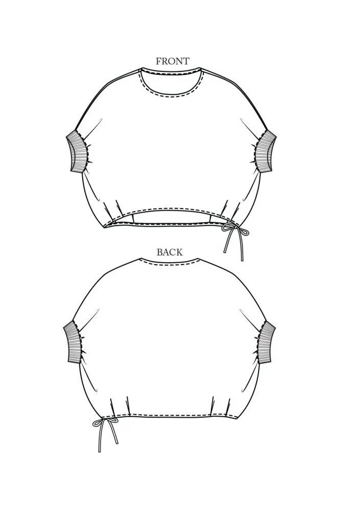 Float around in this light and airy batwing top. It's loose and comfortable. With an optional drawstring waist and a rib cuff, it is a simple make.