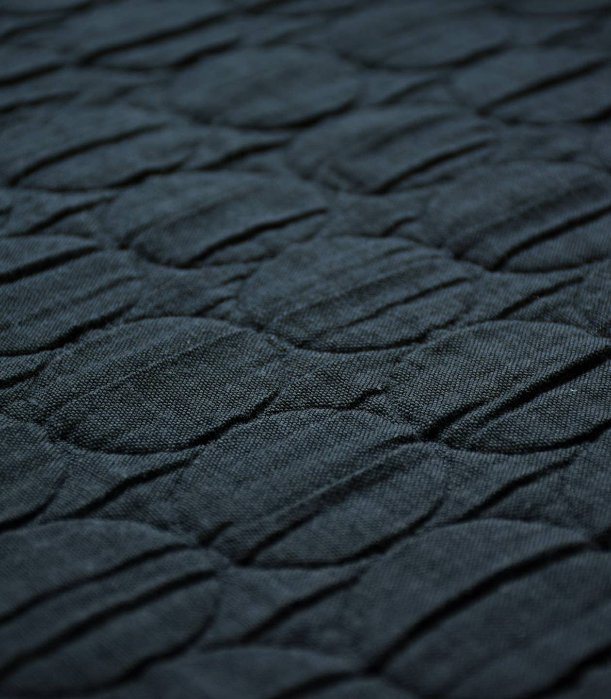 British Symphony Jacquard Quilassé Circle, a superb quilted fabric with a slightly mottled look, one side anthracite and the other bronze. Can be used on both sides.